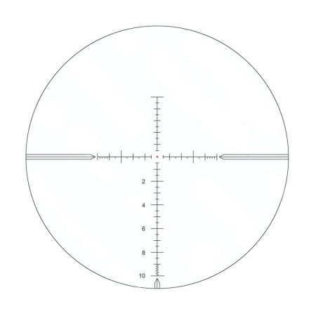 1. Siatka jest umieszczona w pierwszym planie optycznym, czyli przy dowolnie wybranym powiększeniu pozwala na odkładanie poprawek na siatce i ocenę odległości do celu za pomocą siatki. 2. Siatka jest wyskalowana w miliradianach i tak samo bębny regulacyjne. Dzięki temu możemy intuicyjnie i prosto posługiwać się siatką oraz bardzo szybko korygować punkt trafienia w czasie przystrzelania (1 klik = 1 cm / 100m). 3. Siatka typu 'taktycznego', czyli z podziałką, na której można odkładać łatwo poprawki. 4. Zakres powiększeń wystarcza do obserwacji trafień minimum na 100 m (przy strzelaniu do zwykłej tarczy papierowej).