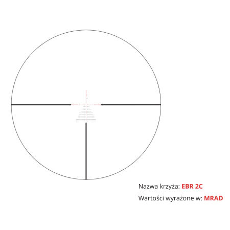 2. Siatka jest wyskalowana w miliradianach i tak samo bębny regulacyjne. Dzięki temu możemy intuicyjnie i prosto posługiwać się siatką oraz bardzo szybko korygować punkt trafienia w czasie przystrzelania (1 klik = 1 cm / 100m).