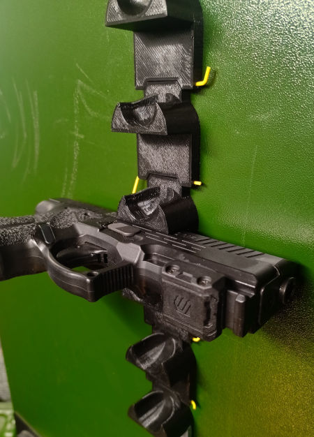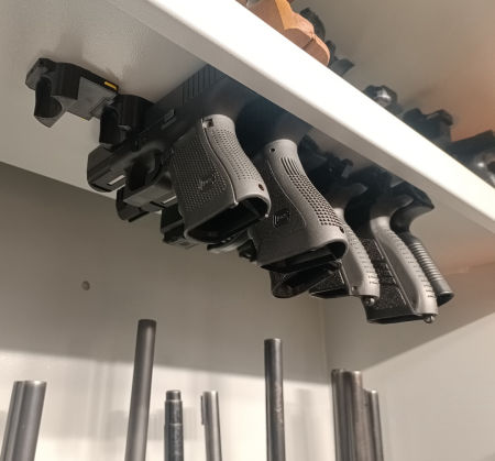 Magnetyczny uchwyt na pistolet ma przede wszystkim pomóc w znalezieniu dodatkowego miejsca na broń w szafie.