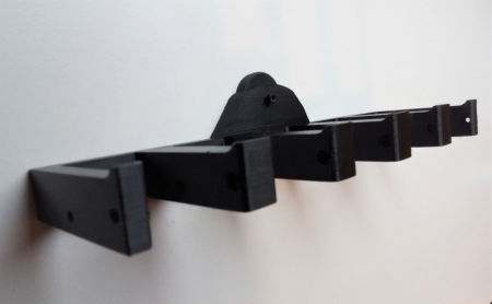 Wieszaki można ze sobą łączyć (każdy model pasuje, np. pistoletowe + AR) w dłuższe, stabilne szeregi za pomocą śrub.